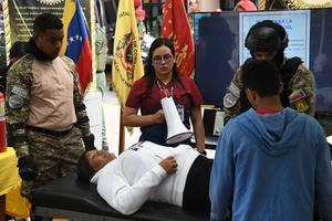 (250927) -- CARACAS, 27 septiembre, 2025 (Xinhua) -- Integrantes de cuerpos de seguridad participan durante el Simulacro Nacional de Protección Civil y Preparación del Pueblo llevado a cabo en una plaza, en Caracas, capital de Venezuela, el 27 de septiembre de 2025. (Xinhua/Marcos Salgado) (ms) (jg) (rtg) (vf)