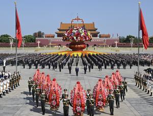 (250930) -- BEIJING, 30 septiembre, 2025 (Xinhua) -- El presidente chino, Xi Jinping, y otros líderes del Partido Comunista de China y del Estado como Li Qiang, Zhao Leji, Wang Huning, Cai Qi, Ding Xuexiang, Li Xi y Han Zheng, asisten a una ceremonia para ofrendar cestas de flores a los héroes nacionales caídos en la Plaza Tian'anmen, en Beijing, capital de China, el 30 de septiembre de 2025. El evento se llevó a cabo para conmemorar el Día de los Mártires, un día antes del Día Nacional de China. (Xinhua/Xie Huanchi) (jg) (ra) (ce)