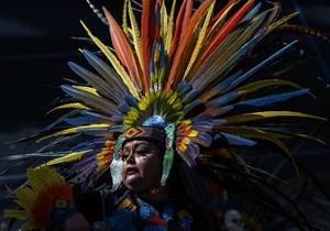 (251001) -- VANCOUVER, 1 octubre, 2025 (Xinhua) -- Imagen del 30 de septiembre de 2025 de una bailarina portando un traje mientras realiza una presentación durante un evento conmemorativo del Día Nacional de la Verdad y la Reconciliación, en la Universidad de Columbia Británica, en Vancouver, Columbia Británica, Canadá. Canadá celebró el martes el Día Nacional de la Verdad y la Reconciliación, también conocido como el Día de la Camisa Naranja, para conmemorar la trágica historia de las escuelas residenciales para indígenas y reflexionar sobre sus impactos duraderos en los sobrevivientes, sus familias y comunidades. (Xinhua/Zou Zheng) (jg) (ra) (ce)