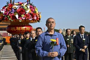 (250930) -- BEIJING, 30 septiembre, 2025 (Xinhua) -- Una ceremonia para ofrendar cestas de flores a los héroes nacionales caídos para conmemorar el Día de los Mártires se lleva a cabo en la Plaza Tian'anmen, en Beijing, capital de China, el 30 de septiembre de 2025. (Xinhua/Yan Yan) (jg) (ra) (ce)