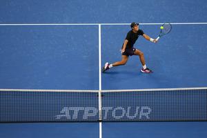 (250930) -- BEIJING, 30 septiembre, 2025 (Xinhua) -- Learner Tien devuelve la pelota durante el partido de semifinales de individuales masculinos entre Daniil Medvedev, de Rusia, y Learner Tien, de Estados Unidos, en el torneo de tenis China Open 2025, en Beijing, China, el 30 de septiembre de 2025. (Xinhua/Na Yuqi) (oa) (vf)