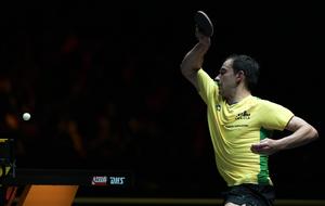 (240930) -- BEIJING, 30 septiembre, 2025 (Xinhua) -- Hugo Calderano, de Brasil, devuelve la pelota durante el partido de dieciseisavos de final de individuales masculinos ante Simon Gauzy, de Francia, en el China Smash del World Table Tennis (WTT) 2025, en Beijing, China, el 30 de septiembre de 2025. (Xinhua/Sun Fei) (oa) (ah) (vf)