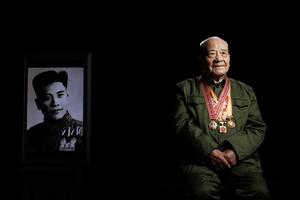 (250930) — BEIJING, 30 septiembre, 2025 (Xinhua) — Imagen del 24 de septiembre de 2025 de Sun Jincheng, de 97 años de edad, un veterano de la Guerra de Resistencia del Pueblo Chino contra la Agresión Japonesa, posando con un retrato de él mismo cuando era más joven en uniforme militar. Nacido en 1928, Sun se unió al Nuevo Cuarto Ejército en 1941. En 2014, el máximo órgano legislativo de China aprobó al 30 de septiembre como el Día de los Mártires para conmemorar a quienes perdieron la vida por la independencia y la prosperidad nacionales. Este año se conmemora el 80º aniversario de la victoria en la Guerra de Resistencia del Pueblo Chino contra la Agresión Japonesa y la Guerra Mundial Antifascista. (Xinhua/Jin Liwang) (oa) (ah) (ce)
