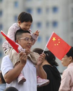 (251001) -- BEIJING, 1 octubre, 2025 (Xinhua) -- Personas asisten a una ceremonia de izamiento de bandera, en Shijiazhuang, en la provincia de Hebei, en el norte de China, el 1 de octubre de 2025. El 76º aniversario de la fundación de la República Popular China se celebró el miércoles de diversas maneras en todo el país. (Xinhua/Liang Zidong) (ah) (ce)