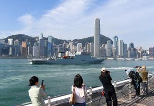 (250930) — HONG KONG, 30 septiembre, 2025 (Xinhua) — El buque naval Qi Jiguang de la Armada del Ejército Popular de Liberación (EPL) de China pasa por el puerto Victoria, en Hong Kong, en el sur de China, el 30 de septiembre de 2025. Los buques navales Qi Jiguang y Yimengshan de la Armada del EPL de China entraron la mañana del martes a las aguas de la Región Administrativa Especial de Hong Kong (RAEHK). Escoltados por buques de la Guarnición del EPL en Hong Kong y del Gobierno de la RAEHK, Qi Jiguang y Yimengshan zarparon rumbo a la base naval de la Guarnición del EPL en Hong Kong en la isla Stonecutters. Los dos buques estarán abiertos al público en la Base Naval de la isla Stonecutters. (Xinhua/Chen Duo) (jg) (ra) (vf)