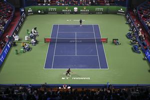 (251001) -- SHANGHAI, 1 octubre, 2025 (Xinhua) -- Sebastián Báez (arriba) compite durante el partido de primera ronda de individuales masculinos entre Zhang Zhizhen, de China y Sebastián Báez, de Argentina en el torneo de tenis Masters de Shanghai del ATP World Tour, en Shanghai, en el este de China, el 1 de octubre de 2025. (Xinhua/Chen Haoming) (ah) (vf)
