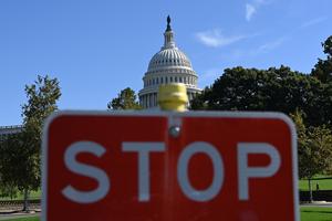 (251001) -- WASHINGTON, 1 octubre, 2025 (Xinhua) -- El edificio del Capitolio estadounidense y una señal de tránsito son vistos en Washington, D.C., Estados Unidos, el 1 de octubre de 2025. El Gobierno Federal de Estados Unidos entró en parálisis el miércoles por la mañana, después de que las divisiones partidistas impidieran al Congreso aprobar una ley de financiación, lo que supone el primer cierre del Gobierno en casi siete años. (Xinhua/Li Rui) (jg) (ra)