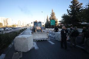 (251001) -- JERUSALEN, 1 octubre, 2025 (Xinhua) -- Policías instalan un bloqueo temporal en carreteras para restringir el tráfico hacia Jerusalén Occidental previo al Yom Kippur, en el este de Jerusalén, el 1 de octubre de 2025. Yom Kippur, el Día de la Expiación judío, es un día solemne de reflexión y ayuno, en el que la mayoría de los automóviles no pueden circular por las carreteras. Este año, Yom Kippur comienza el 1 de octubre y termina el 2 de octubre. (Xinhua/Jamal Awad) (ah) (ce)