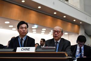 (251001) -- GINEBRA, 1 octubre, 2025 (Xinhua) -- Chen Xu (d), representante permanente de China ante la Oficina de la ONU en Ginebra y otras organizaciones internacionales con sede en Suiza, habla en la 60ª sesión del Consejo de Derechos Humanos de la ONU, en Ginebra, Suiza, el 29 de septiembre de 2025. Chen pidió el lunes a la comunidad internacional que acelere los esfuerzos para resolver la cuestión palestina. Hizo estas declaraciones al asistir al debate general del punto siete del orden del día sobre la situación de los derechos humanos en Palestina y otros territorios árabes ocupados. (Xinhua/Lian Yi) (jg) (ra) (ce)