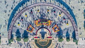 (251002) -- BEIJING, 2 octubre, 2025 (Xinhua) -- Vista aérea tomada con un dron el 2 de octubre de 2025 de turistas visitando la plaza del Monumento de Control de Inundaciones, en Harbin, en la provincia de Heilongjiang, en el noreste de China. Con el Festival de Medio Otoño de China coincidiendo este año con el Día Nacional, las personas pasan su tiempo libre de diferentes maneras durante las vacaciones de ocho días de duración. (Xinhua/Chen Nan) (rtg) (ra) (ce)