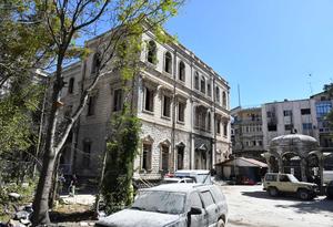 (251002) -- DAMASCO, 2 octubre, 2025 (Xinhua) -- Imagen del 1 de octubre de 2025 de un edificio histórico que también es la antigua sede del Ministerio del Interior de Siria visto después de que parte de su techo colapsara durante la renovación en la Plaza Marjeh, en el centro de Damasco, Siria. (Xinhua/Ammar Safarjalani) (rtg) (ra) (vf)