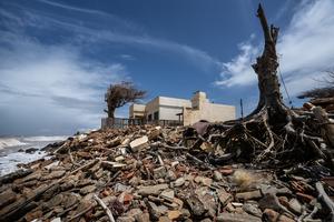 (251005) — ATAFONA, 5 octubre, 2025 (Xinhua) — Imagen del 4 de octubre de 2025 de ruinas costeras erosionadas por las olas de mar, en Atafona, en el estado de Río de Janeiro, Brasil. En los últimos años, Atafona, una ciudad costera en el norte del estado de Río de Janeiro, ha sido absorbida gradualmente por el mar debido a la grave erosión costera, con el derrumbe de viviendas y la reubicación forzada de sus residentes. Mientras Brasil se prepara para albergar la 30ª Conferencia de las Partes (COP30) de Naciones Unidas sobre Cambio Climático, programada para este noviembre en Belém, la situación en Atafona es un vívido recordatorio del profundo impacto del cambio climático y el aumento del nivel del mar en las comunidades costeras de todo el mundo. (Xinhua/Wang Tiancong) (rtg) (ah)