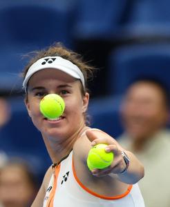 (251003) -- BEIJING, 3 octubre, 2025 (Xinhua) -- Linda Noskova lanza una pelota a las gradas después de ganar el partido de cuartos de final de individuales femeninos entre Linda Noskova, de República Checa, y Sonay Kartal, de Reino Unido, en el torneo de tenis China Open 2025, en Beijing, China, el 3 de octubre de 2025. (Xinhua/Du Xinyi) (oa) (ra) (ce)