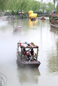 (251004) — BEIJING, 4 octubre, 2025 (Xinhua) — Imagen del 3 de octubre de 2025 de personas visitando el antiguo poblado de Hexia, en Huai’an, en la provincia de Jiangsu, en el este de China. Los destinos turísticos de toda China están experimentando un aumento en el número de visitantes desde el miércoles con el comienzo de las vacaciones de ocho días por el Día Nacional y el Festival de Medio Otoño. (Xinhua/Chen Qibao) (jg) (rtg) (ce)