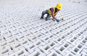 (251002) -- BEIJING, 2 octubre, 2025 (Xinhua) -- Un trabajador realiza tareas en el sitio de construcción de un proyecto de control de inundaciones, en la ciudad de Langfang, en la provincia de Hebei, en el norte de China, el 2 de octubre de 2025. Trabajadores de todos los ámbitos de la vida se han mantenido firmes en sus puestos y han cumplido con sus deberes con total dedicación durante los ocho días de vacaciones por el Día Nacional y el Festival del Medio Otoño. (Xinhua/Wang Xiao) (jg) (ah) (ce)
