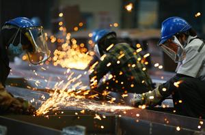 (251002) -- BEIJING, 2 octubre, 2025 (Xinhua) -- Trabajadores esmerilan componentes de acero en un taller, en la ciudad de Tengzhou, en la provincia de Shandong, en el este de China, el 2 de octubre de 2025. Trabajadores de todos los ámbitos de la vida se han mantenido firmes en sus puestos y han cumplido con sus deberes con total dedicación durante los ocho días de vacaciones por el Día Nacional y el Festival del Medio Otoño. (Xinhua/Li Zhijun) (jg) (ah) (ce)