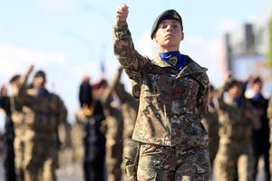 (251002) -- NICOSIA, 2 octubre, 2025 (Xinhua) -- Imagen del 1 de octubre de 2025 de soldados de la Guardia Nacional chipriota marchando en un desfile militar en celebración del 65 aniversario de la Independencia de Chipre, en Nicosia, Chipre. Chipre conmemoró el miércoles el 65 aniversario de su Independencia con un desfile militar en Nicosia, destacando la resiliencia nacional y las aspiraciones de reunificación. (Xinhua/George Christophorou) (jg) (ah) (vf)