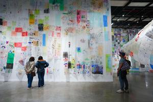(251005) -- BOGOTA, 5 octubre, 2025 (Xinhua) -- Imagen del 4 de octubre de 2025 de personas recorriendo la exposición "Museo Aero Solar", en Bogotá, Colombia. Un enorme globo construido con 5.000 bolsas plásticas de un solo uso ha atraído a miles de visitantes al Centro Cívico de la Universidad de los Andes de Bogotá, uno de los espacios dispuestos para la exhibición de las obras de la primera edición de la Bienal Internacional de Arte y Ciudad, que se desarrolla en la capital colombiana. (Xinhua/Andrés Moreno) (am) (rtg) (ah)