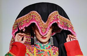 (251002) -- PARIS, 2 octubre, 2025 (Xinhua) -- Imagen del 1 de octubre de 2025 de una modelo presentando una creación de ropa étnica lisu del distrito de Yanbian, de la provincia de Sichuan, en el suroeste de China, como parte del evento cultural "Patrimonio Cultural Inmaterial de Sichuan: Cien Ciudades, Cien Artesanías" durante el 3 festival de moda y cultura sino-francés en el centro cultural chino, en París, Francia. El 3 festival de moda y cultura sino-francés se lleva a cabo del 29 de septiembre al 6 de octubre. (Xinhua/Gao Jing) (rtg) (ra) (vf)
