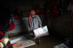 (251005) -- KATMANDU, 5 octubre, 2025 (Xinhua) -- Un hombre limpia su casa inundada, en Katmandú, Nepal, el 5 de octubre de 2025. Deslizamientos de tierra provocados por las lluvias han dejado 14 muertos y ocho desaparecidos en Nepal, informó el domingo la Policía. Las lluvias incesantes desde el viernes han afectado la vida diaria en la mayor parte de Nepal, provocando deslizamientos e inundaciones que han bloqueado carreteras y vías principales. (Xinhua/Sulav Shrestha) (oa) (ah)