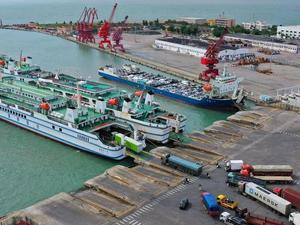 (251004) -- HAIKOU, Oct. 4, 2025 (Xinhua) -- An aerial drone photo taken on Oct. 4, 2025 shows passengers ships at Xiuying Port of Haikou, south China's Hainan Province. As Typhoon Matmo, the 21st named storm of the 2025 Pacific typhoon season, approaches, the provincial committee for disaster prevention, mitigation and relief upgraded their emergency typhoon response for vessels and marine operations in affected sea areas to Level III from a Level-IV emergency response at 8:30 a.m. on Saturday. (Xinhua/Guo Cheng)