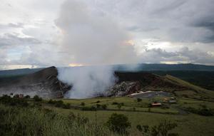 (220822) -- MASAYA, 28 agosto, 2022 (Xinhua) -- Imagen del 27 de agosto de 2022 del cráter Santiago del volcán Masaya, en el departamento de Masaya, Nicaragua. El volcán Masaya está situado al centro del Parque Nacional Volcán Masaya, el cual es el primer y más grande parque nacional de Nicaragua, compuesto de una caldera volcánica de dos volcanes y cinco cráteres. El parque es uno de los más populares atractivos turísticos, gracias a que ofrece la oportunidad del contacto directo con el área de su cráter, así como con la flora y la fauna del sitio. (Xinhua/Oswaldo Rivas) (or) (oa) (ah) (da)