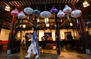 (251006) -- VANCOUVER, 6 octubre, 2025 (Xinhua) -- Imagen del 5 de octubre de 2025 de una mujer caminando bajo linternas exhibidas durante un evento del Festival del Medio Otoño en el Jardín Clásico Chino del Dr. Sun Yat-Sen, en Vancouver, Columbia Británica, Canadá. (Xinhua/Liang Sen) (oa) (ah) (vf)