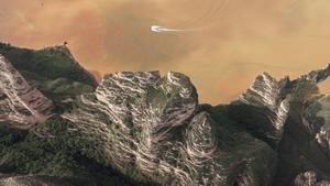 (251006) -- BEIJING, 6 octubre, 2025 (Xinhua) -- Vista aérea tomada con un dron el 6 de octubre de 2025 de turistas a bordo de un bote en el Parque Nacional Geológico Bingling Danxia, en el distrito de Yongjing, en la provincia de Gansu, en el noroeste de China. A medida que convergen las vacaciones por el Día Nacional de China y el Festival del Medio Otoño, las actividades culturales, las activas redes de transporte y las innovadoras escenas de consumo del país están pintando un panorama vívido de resiliencia económica y potencial de crecimiento. (Xinhua/Shi Youdong) (rtg) (ah) (vf)