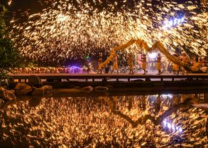 (251006) -- BEIJING, 6 octubre, 2025 (Xinhua) -- Imagen del 5 de octubre de 2025 de artistas folclóricos realizando una presentación en un punto escénico, en Chengdu, en la provincia de Sichuan, en el suroeste de China. A medida que convergen las vacaciones por el Día Nacional de China y el Festival del Medio Otoño, las actividades culturales, las activas redes de transporte y las innovadoras escenas de consumo del país están pintando un panorama vívido de resiliencia económica y potencial de crecimiento. (Xinhua/Li Xiangyu) (rtg) (ah) (vf)