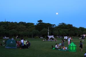 (251006) — BEIJING, 6 octubre, 2025 (Xinhua) — Personas admiran la luna llena en un campamento, en Shenzhen, en la provincia de Guangdong, en el sur de China, el 6 de octubre de 2025. Personas participaron en diversos eventos culturales folclóricos tradicionales el lunes para celebrar el Festival del Medio Otoño. (Xinhua/Mao Siqian) (oa) (ah) (vf)
