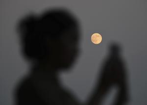 (251006) -- BEIJING, 6 octubre, 2025 (Xinhua) -- Una turista revisa fotografías de la luna llena cerca del lago del Oeste, en Hangzhou, en la provincia de Zhejiang, en el este de China, el 6 de octubre de 2025. El lunes se celebra el Festival del Medio Otoño de este año, que tiene lugar cada año el decimoquinto día del octavo mes del calendario lunar chino. Personas de toda China admiran la luna llena para celebrar esta festividad tradicional. (Xinhua/Long Wei) (oa) (ah) (vf)