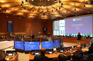 (251006) -- PARIS, 6 octubre, 2025 (Xinhua) -- La 222ª sesión del Consejo Ejecutivo de la Unesco se lleva a cabo, en París, Francia, el 6 de octubre de 2025. El exministro egipcio de Turismo y Antigüedades, Khaled Ahmed El-Enany Ali Ezz, fue nominado como el único candidato para el cargo de director general de la Unesco durante la 222ª sesión del Consejo Ejecutivo de la organización, celebrada el lunes en París. (Xinhua/Zhang Baihui) (rtg) (ah) (vf)