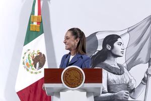 (251006) -- CIUDAD DE MEXICO, 6 octubre, 2025 (Xinhua) -- Imagen proveída por la Presidencia de México de la presidenta mexicana, Claudia Sheinbaum, sonriendo durante su conferencia de prensa matutina, en Palacio Nacional, en la Ciudad de México, capital de México, el 6 de octubre de 2025. Sheinbaum reafirmó el lunes que su administración continuará guiándose por los principios del humanismo mexicano y la economía moral, con énfasis en la justicia social, la distribución equitativa de la riqueza y la sustentabilidad.(Xinhua/Presidencia de México) (rtg) (ah) (vf)