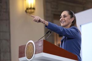 (251006) -- CIUDAD DE MEXICO, 6 octubre, 2025 (Xinhua) -- Imagen proveída por la Presidencia de México de la presidenta mexicana, Claudia Sheinbaum, sonriendo durante su conferencia de prensa matutina, en Palacio Nacional, en la Ciudad de México, capital de México, el 6 de octubre de 2025. Sheinbaum reafirmó el lunes que su administración continuará guiándose por los principios del humanismo mexicano y la economía moral, con énfasis en la justicia social, la distribución equitativa de la riqueza y la sustentabilidad.(Xinhua/Presidencia de México) (rtg) (ah) (vf)