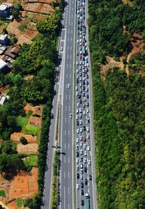 (251007) — BEIJING, 7 octubre, 2025 (Xinhua) — Imagen tomada con un dron el 7 de octubre de 2025 del flujo vehicular de una autopista, en Chenzhou, en la provincia de Hunan, en el centro de China. A medida que las vacaciones del Día Nacional y el Festival de Medio Otoño llegan a su fin, los flujos de viajes de regreso aumentan en todo el país. (Xinhua/Huang Chuntao) (jg) (ra) (ce)