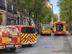 (251007) -- MADRID, 7 octubre, 2025 (Xinhua) -- Imagen tomada con un teléfono móvil el 7 de octubre de 2025 de una escena vista en el sitio del colapso de un edificio, en Madrid, España. Un edificio en renovación colapsó parcialmente el martes en el centro de Madrid, dejando al menos tres heridos y cuatro desaparecidos, informaron las autoridades. (Xinhua/Zhang Yuheng) (jg) (ra) (vf)