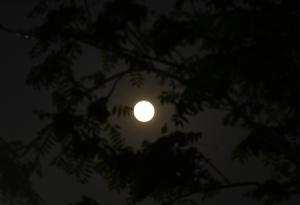 (251007) -- DAMASCO, 7 octubre, 2025 (Xinhua) -- Imagen del 6 de octubre de 2025 de la luna llena brillando a través de las ramas de los árboles, en Damasco, Siria. (Xinhua/Ammar Safarjalani) (jg) (ra) (ce)