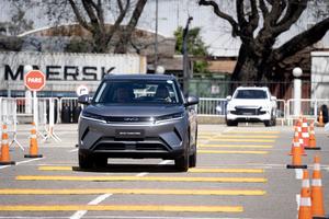 (251008) — BUENOS AIRES, 8 octubre, 2025 (Xinhua) — Asistentes realizan una prueba de conducción del modelo Yuan Pro de la compañía china de tecnología Build Your Dreams (BYD) durante el evento de lanzamiento de modelos para el mercado argentino, en la ciudad de Buenos Aires, capital de Argentina, el 8 de octubre de 2025. Los autos eléctricos e híbridos del fabricante chino BYD desembarcaron oficialmente en Argentina tras un lanzamiento realizado el miércoles en la ciudad de Buenos Aires. (Xinhua/Martín Zabala) (mz) (jg) (da) (ce)