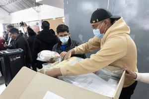 (251008) — LA PAZ, 8 octubre, 2025 (Xinhua) — Imagen del 7 de octubre de 2025 de funcionarios ordenando el material de votación de las maletas electorales para su traslado en la bodega del Tribunal Electoral Departamental, en La Paz, Bolivia. El Tribunal Supremo Electoral de Bolivia oficializó el miércoles la convocatoria para la segunda vuelta presidencial en el país que se celebrará el 19 de octubre de 2025, la primera en la historia democrática del país. (Xinhua/Javier Mamani) (jm) (jg) (da) (vf)