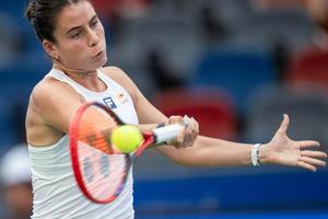 (251007) -- WUHAN, 7 octubre, 2025 (Xinhua) -- Emma Navarro, de Estados Unidos, devuelve la pelota durante el partido de treintaidosavos de individuales femeninos ante Zhang Shuai, de China, en el torneo de tenis Wuhan Open 2025, en Wuhan, en la provincia de Hubei, en el centro de China, el 7 de octubre de 2025. (Xinhua/Xiao Yijiu) (oa) (ah) (vf)
