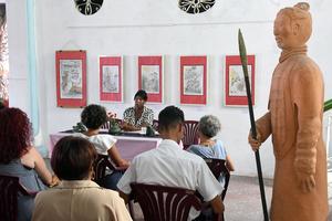 (251008) — LA HABANA, 8 octubre, 2025 (Xinhua) — Imagen del 7 de octubre de 2025 de la decana de la Facultad de Turismo de la Universidad de La Habana, Lisandra Torres (atrás), hablando durante una conferencia académica realizada en la Casa de Artes y Tradiciones Chinas, como parte del programa de actividades conmemorativas por el 65º aniversario del establecimiento de relaciones diplomáticas entre China y Cuba, en La Habana, capital de Cuba. Las potencialidades del Barrio Chino de La Habana como una opción para el turismo urbano en la nación caribeña fueron presentadas el martes en una conferencia académica. (Xinhua/Joaquín Hernández) (jh) (ah) (ra) (vf)