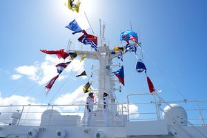 (251007) -- SUVA, 7 octubre, 2025 (Xinhua) -- Imagen del 1 de octubre de 2025 del buque hospital naval chino "Arca de la Ruta de la Seda" llegando a Suva, Fiyi. El ministro de Defensa y Asuntos de Veteranos de Fiyi, Pio Tikoduadua, dijo que el buque hospital naval chino "Arca de la Ruta de la Seda" ha aportado beneficios tangibles a la comunidad fiyiana, convirtiéndose en un símbolo muy bienvenido de atención, servicio y buena voluntad. (Xinhua/Zhang Dongjie) (jg) (ra) (vf)