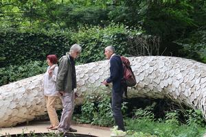 (251008) — PARIS, 8 octubre, 2025 (Xinhua) — Imagen del 20 de agosto de 2025 de personas visitando el jardín de la Serpiente Blanca, instalado en el Domain of Chaumont-sur-Loire durante el Festival Internacional del Jardín 2025, en Loir-et-Cher, Francia. Inspirado en la “Leyenda de la Serpiente Blanca” de China, el jardín fue creado por la diseñadora francesa Clementine Bory y su equipo. (Xinhua/Zhang Baihui) (ah) (vf)