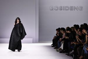 (251008) -- PARIS, 8 octubre, 2025 (Xinhua) -- Imagen del 7 de octubre de 2025 de una modelo presentando una creación de la marca china de moda de plumón Bosideng como parte de su colección Master Puff durante la Semana de la Moda de París, en París, Francia. (Xinhua/Gao Jing) (jg) (da) (ce)