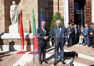 (251008) -- ROMA, 8 octubre, 2025 (Xinhua) -- El ministro de Relaciones Exteriores chino, Wang Yi, también miembro del Buró Político del Comité Central del Partido Comunista de China (PCCh), se reúne con la prensa junto con el vice primer ministro y ministro de Relaciones Exteriores y Cooperación Internacional de Italia, Antonio Tajani, en Roma, Italia, el 8 de octubre de 2025. (Xinhua/Li Jing) (jg) (da) (ce)