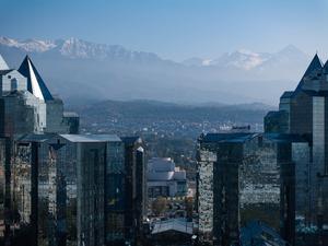 (251007) -- ALMATY, 7 octubre, 2025 (Xinhua) -- Vista aérea tomada con un dron el 6 de octubre de 2025 del paisaje de la ciudad de Almaty, Kazajistán. (Xinhua/Li Renzi) (jg) (ra) (ce)