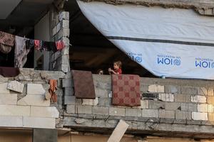 (251008) — GAZA, 8 octubre, 2025 (Xinhua) — Imagen del 7 de octubre de 2025 de niños palestinos vistos en un edificio, en la Ciudad de Gaza. Las negociaciones indirectas entre Hamás e Israel comenzaron el miércoles por tercer día en el centro turístico egipcio de Sharm el-Sheikh, en el Mar Rojo, informó Al-Qahera News, medio afiliado al Estado egipcio. (Xinhua/Abdul Rahman Salama) (jg) (da) (vf)