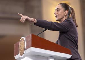 (251007) — CIUDAD DE MEXICO, 7 octubre, 2025 (Xinhua) — Imagen proveída por la Presidencia de México de la presidenta mexicana, Claudia Sheinbaum, reaccionando durante su conferencia de prensa matutina, en Palacio Nacional, en la Ciudad de México, capital de México, el 7 de octubre de 2025. Sheinbaum afirmó el martes que “hay mucha comunicación” entre los gobiernos de México y Estados Unidos en materia de inteligencia financiera, con el propósito de combatir el lavado de dinero vinculado a grupos criminales, todo ello en un marco de respeto a la soberanía nacional. (Xinhua/Presidencia de México) (jg) (ra) (vf)