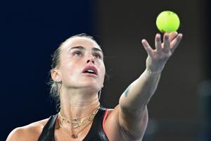 (251009) -- WUHAN, 9 octubre, 2025 (Xinhua) -- Aryna Sabalenka, de Bielorrusia, sirve la pelota durante el partido de octavos de final de individuales femeninos ante Liudmila Samsonova, de Rusia, en el torneo de tenis Wuhan Open 2025, en Wuhan, en la provincia de Hubei, en el centro de China, el 9 de octubre de 2025. (Xinhua/Cheng Min) (da) (ra) (ce)