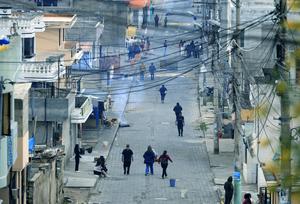 (251009) -- SAN MIGUEL DEL COMUN, 9 octubre, 2025 (Xinhua) -- Personas caminan por una calle durante un bloqueo en el marco del paro nacional, en la comuna de San Miguel del Común, a las afueras de la ciudad de Quito, capital de Ecuador, el 9 de octubre de 2025. (Xinhua/Ricardo Landeta) (rl) (rtg) (ra) (ce)